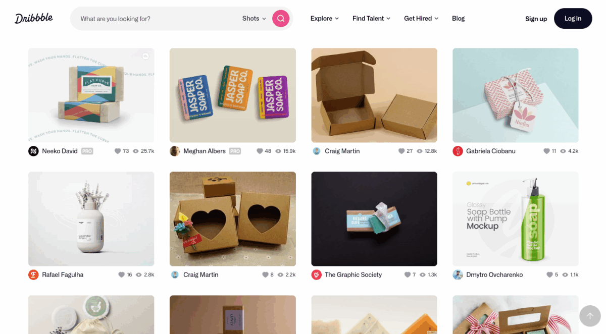 Mirip dengan Behance, Dribbble menampilkan “cuplikan” desain dari para profesional, cocok untuk mencari inspirasi tren warna, tipografi, dan ilustrasi terkini.
